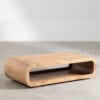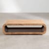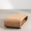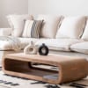 Sự kết hợp hài hòa giữa độ cong uyển chuyển và chất gỗ tự nhiên nguyên khối giúp chiếc bàn vừa vững chắc; vừa tinh tế, trở thành điểm nhấn nghệ thuật cho không gian phòng khách.