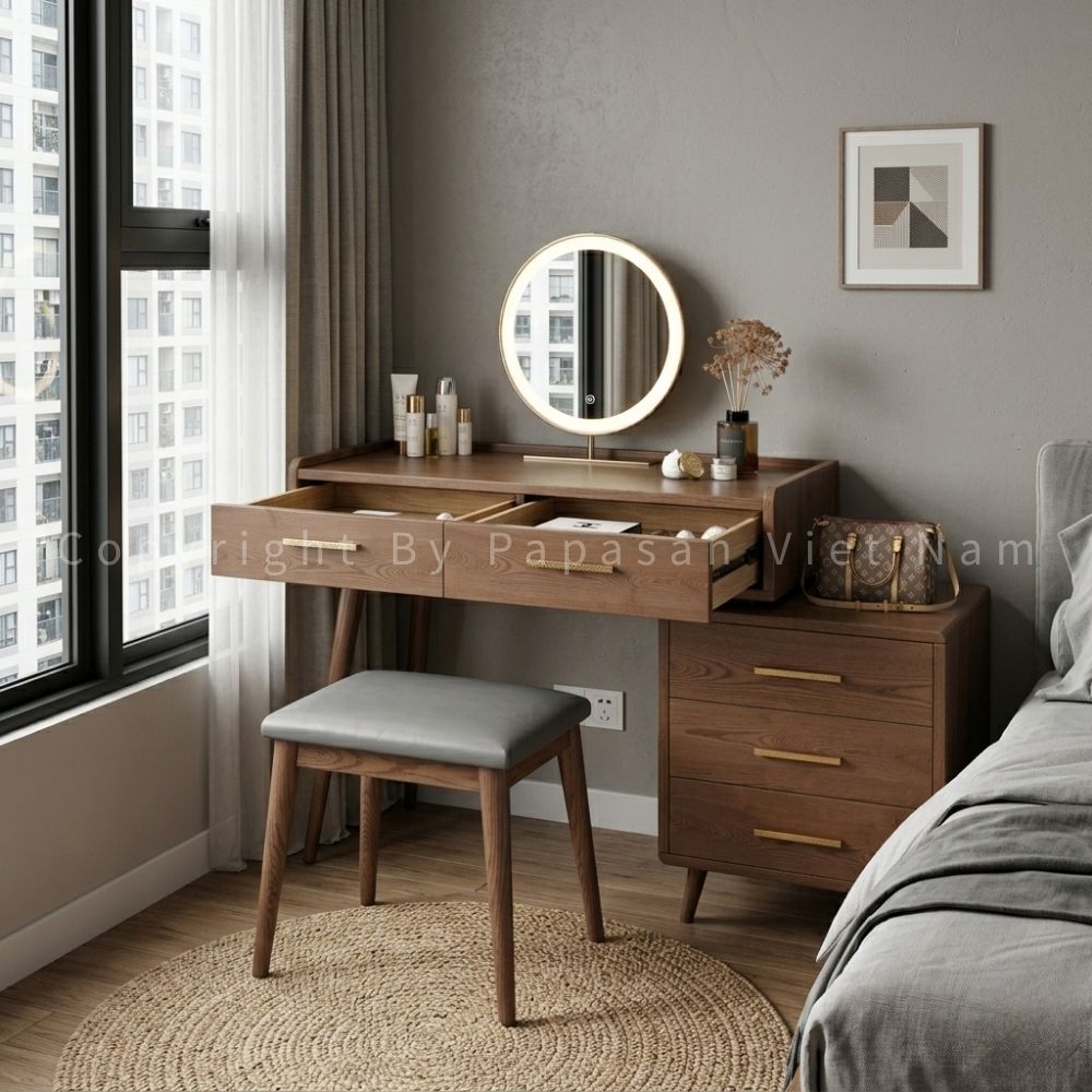 Bàn vanity gỗ phù hợp nhiều không gian phòng ngủ
