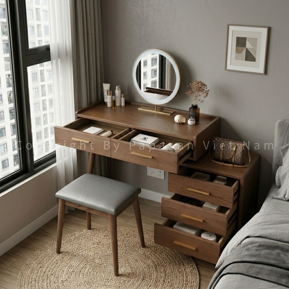 Bàn trang điểm gỗ sồi nhiều ngăn kéo tiện lợi
