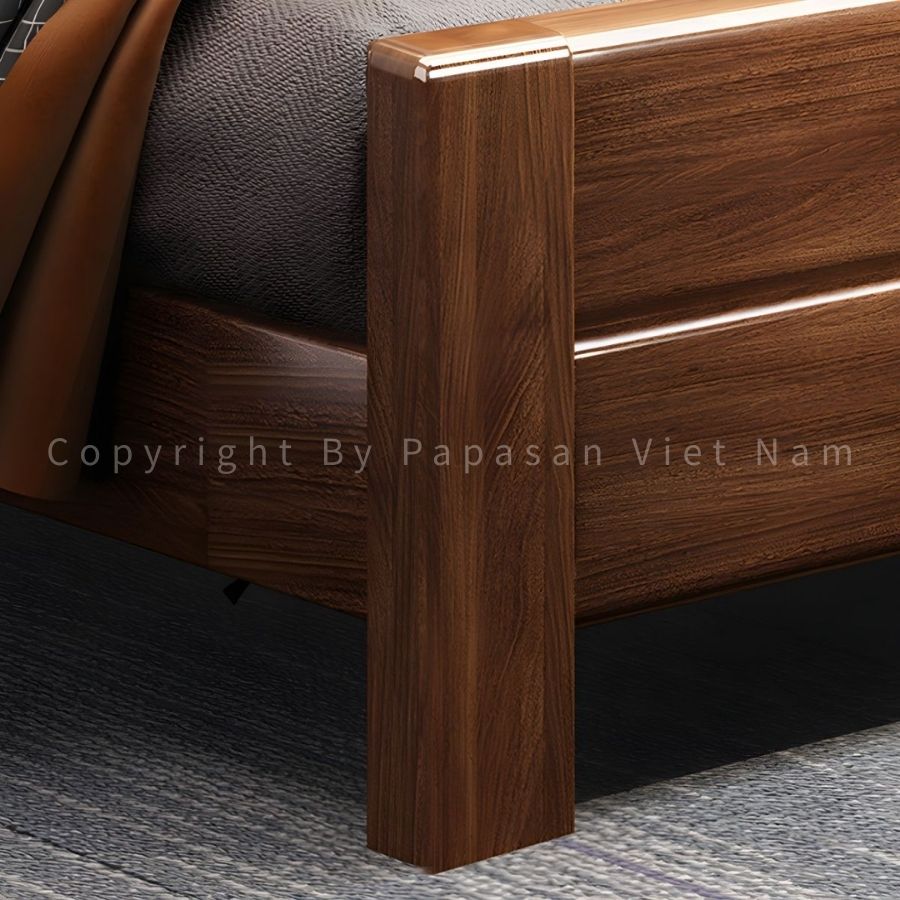 GN52 không chạy theo chi tiết trang trí rườm rà. Thay vào đó, giường tập trung vào tỷ lệ cân đối và bề mặt gỗ hoàn thiện kỹ, giúp sản phẩm giữ được vẻ đẹp bền bỉ theo thời gian, càng dùng càng thấy chắc và “đã”.