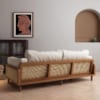 Điểm nhấn tinh tế nằm ở phần tay vịn và thành ghế phối mây đan tự nhiên; tạo hiệu ứng thị giác ấm áp và độc bản – vừa cổ điển vừa hiện đại.