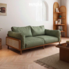 Tông xanh olive trên lớp đệm dày mềm mịn kết hợp cùng khung gỗ sồi nâu sáng giúp không gian trở nên thư giãn, trong lành và đầy sức sống.