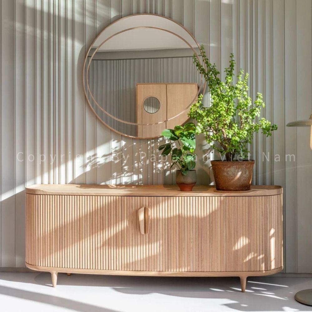 Nếu như bàn trà hay bàn ăn luôn chiếm vị trí trung tâm, thì những chiếc tủ bán nguyệt lại là “nhân vật thầm lặng” nhưng cực kỳ hữu ích.