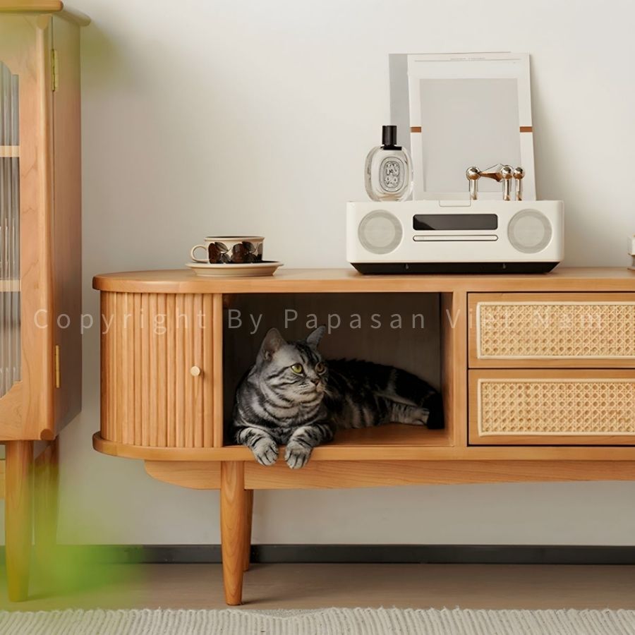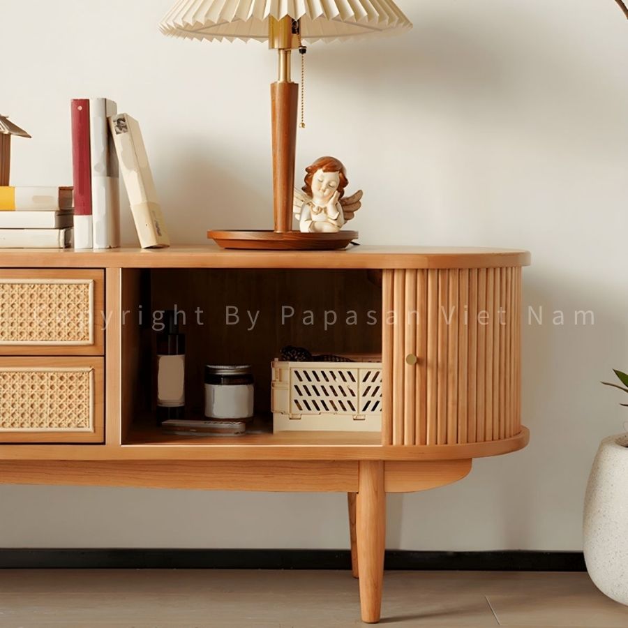 - Đường nét sạch sẽ: Sự tối giản này là đặc trưng của phong cách Scandinavian, giúp chiếc tủ dễ dàng hòa hợp với bất kỳ món nội thất nào mà không gây rối mắt.